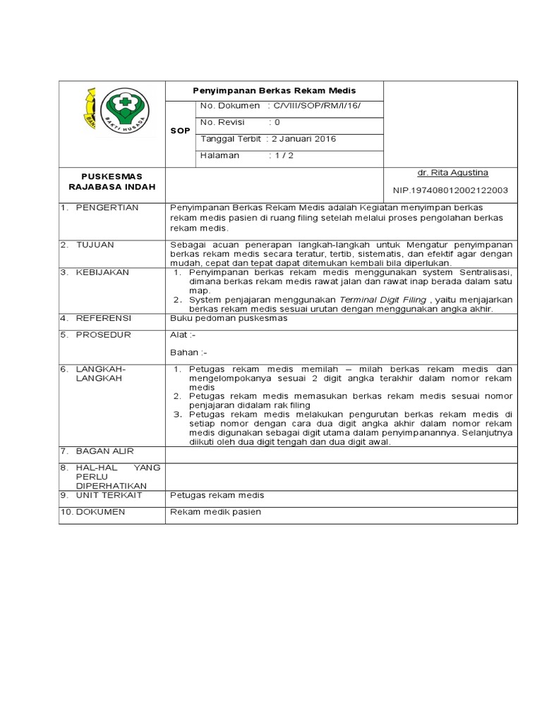 CONTOH SOP Rekam Medik Puskesmas Sumber : www.scribd.com